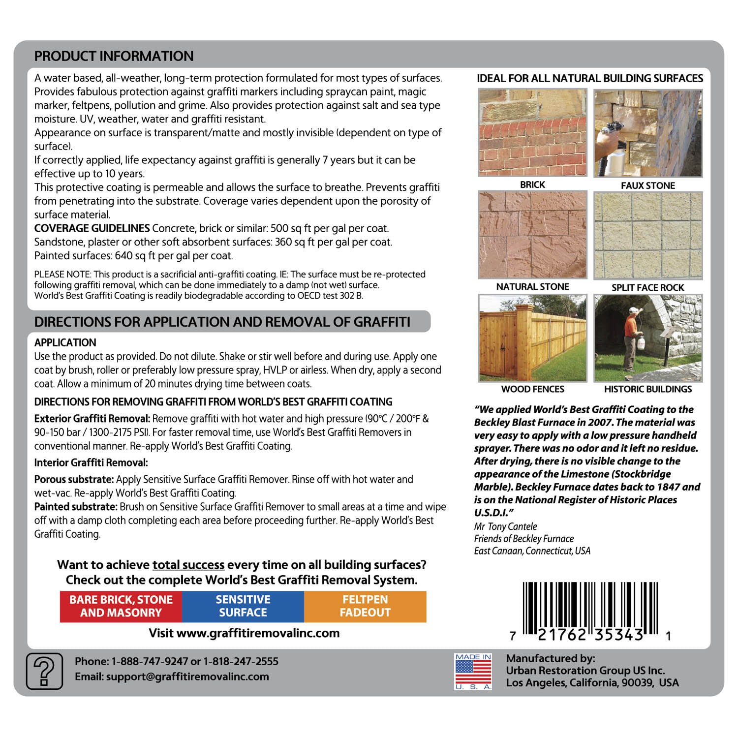 World’s Best Graffiti Coating (WBGC) is now available in 32oz bottles. This will allow you to test the product before placing a larger order. For further details and gallon size options, please see our World's Best Graffiti Coating product page.