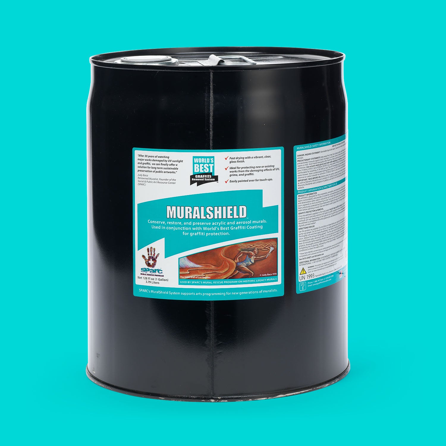 - Compatibility: Works well with acrylic-based, hybrid water-based, and fine art aerosol spray paints. Not recommended for oil-based paints. MuralShield™ will not consolidate through oil-based paint, but will instead act as a coating.