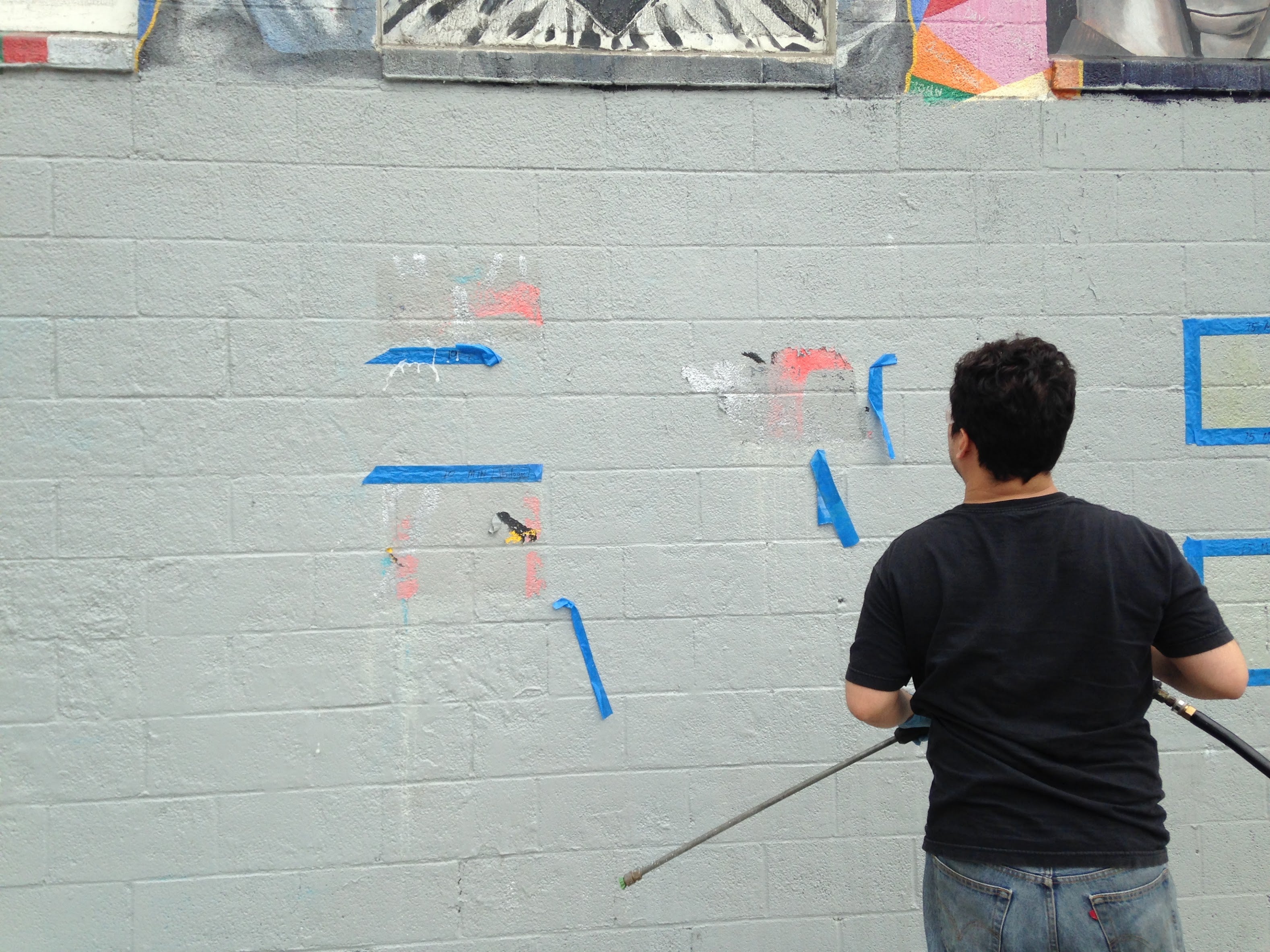 On July 20, 2016, the CityWide Mural Program (CWMP) team began the restoration process of La Ofrenda, located under a bridge on 2nd and Toluca in downtown Los Angeles. The piece was painted by Yreina Cervantez in 1989. Since then, the mural had been tagged with graffiti numerous times and completely covered by another mural.